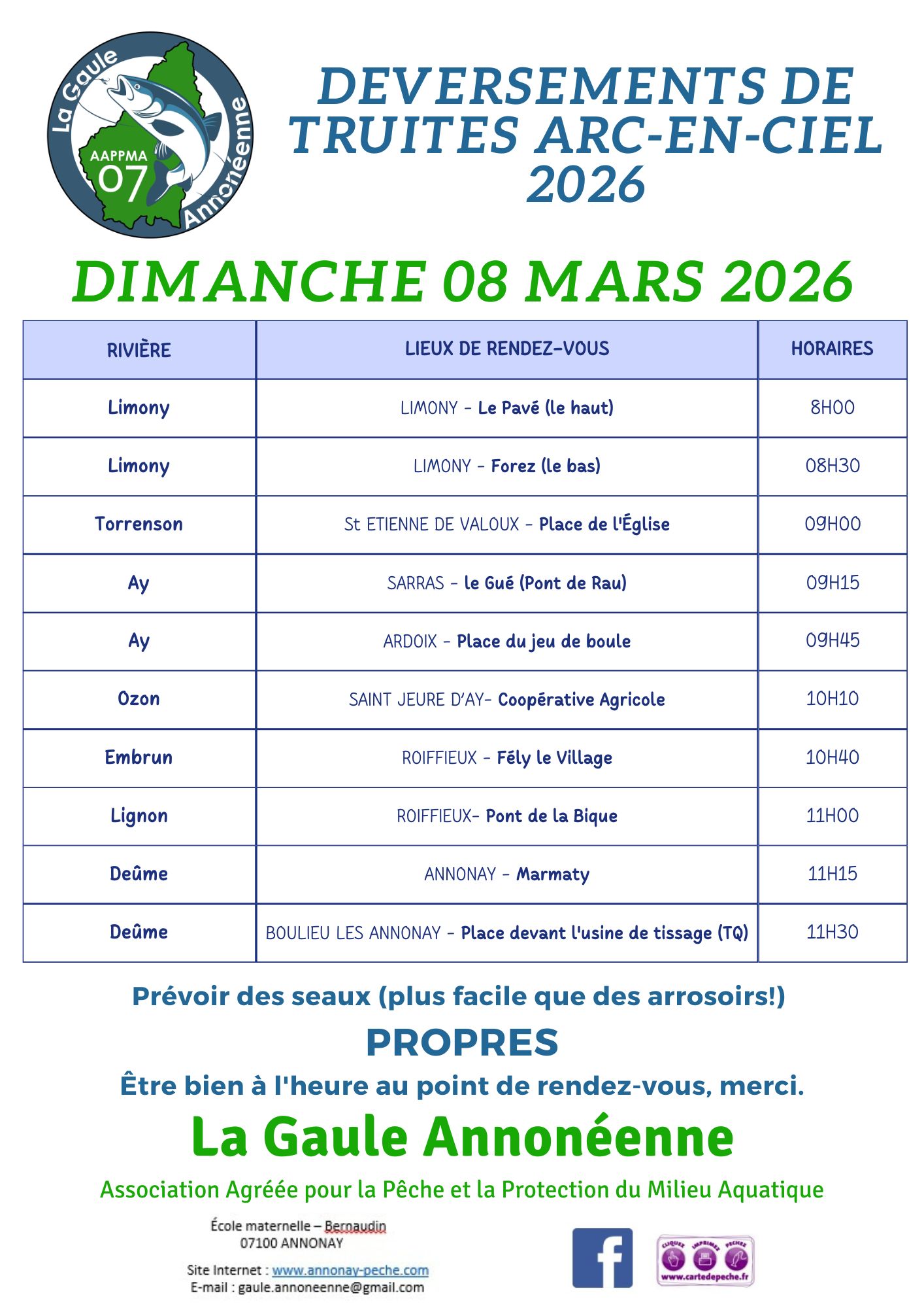 Appel aux bénévoles ! Déversement de truites arc en ciel le dimanche 08 mars 2026 ...