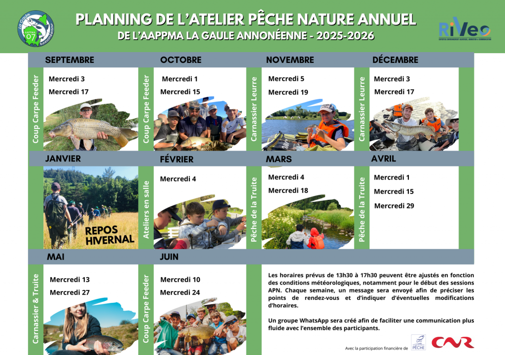Découvrez le programme de nos écoles de pêche 2025 et 2025/2026.